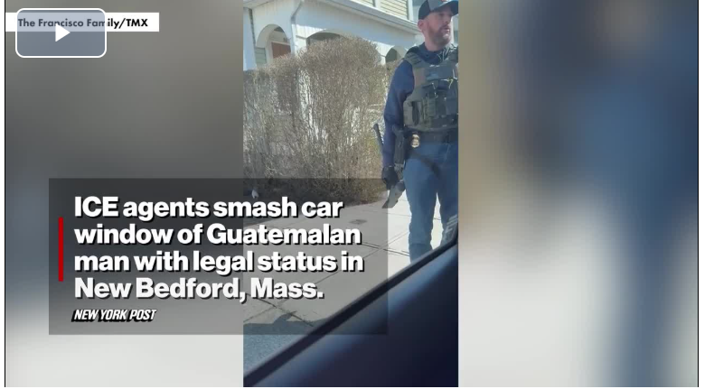 Một đoạn video lan truyền trên mạng xã hội ghi lại khoảnh khắc các đặc vụ Cơ quan Thực thi Di trú và Hải quan Hoa Kỳ (ICE) đập vỡ cửa kính ô tô của một người đàn ông Guatemala có tình trạng pháp lý hợp lệ tại thành phố New Bedford, bang Massachusetts.