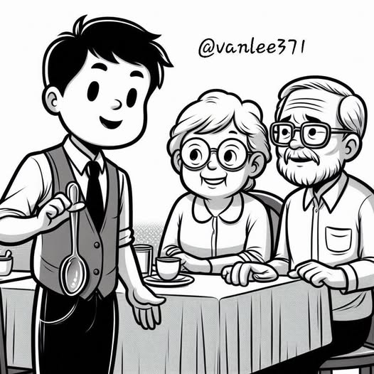 Sau đó, khi gọi món tráng miệng, người chồng nhận thấy một điều thậm chí còn kỳ lạ hơn — một sợi dây nhỏ thò ra từ quần của người phục vụ. Ông ấy chỉ và nói, “Này, tôi không có ý tò mò, nhưng… có một sợi dây thò ra từ khóa quần của anh.”