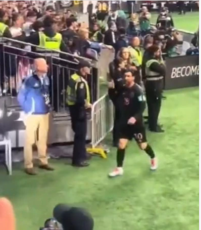 Sau khi tiếng còi mãn cuộc vang lên, Messi rời sân để tiến vào đường hầm dẫn tới phòng thay đồ. Khi anh bước đi, một cổ động viên của Vancouver Whitecaps đã giơ cao chiếc áo đội tuyển Bồ Đào Nha có in tên và số áo của Ronaldo, như một cách để khiêu khích Messi giữa lúc thất vọng. Hành động này nhanh chóng khiến Messi phản ứng.