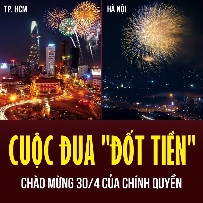 Toàn bộ lượng tiền “pháo – hoa – quân – đội” ấy, nếu dùng đúng cách, đủ để hỗ trợ hàng triệu hộ nghèo, cứu đói cho trẻ em miền núi, đầu tư y tế tuyến cơ sở hay xóa bớt nợ học phí cho sinh viên nghèo. Nhưng không! Chỉ cần vài tiếng đồng hồ hào nhoáng ngắn ngủi trên sóng truyền h́nh, lănh đạo sẵn sàng chi đậm để tô vẽ “sự kiện để đời” cho sự nghiệp cách mạng cá nhân. Miễn sao sau này, khi về hưu, có ǵ để kể lại, có ǵ để khoe, là đă thấy xứng đáng rồi!