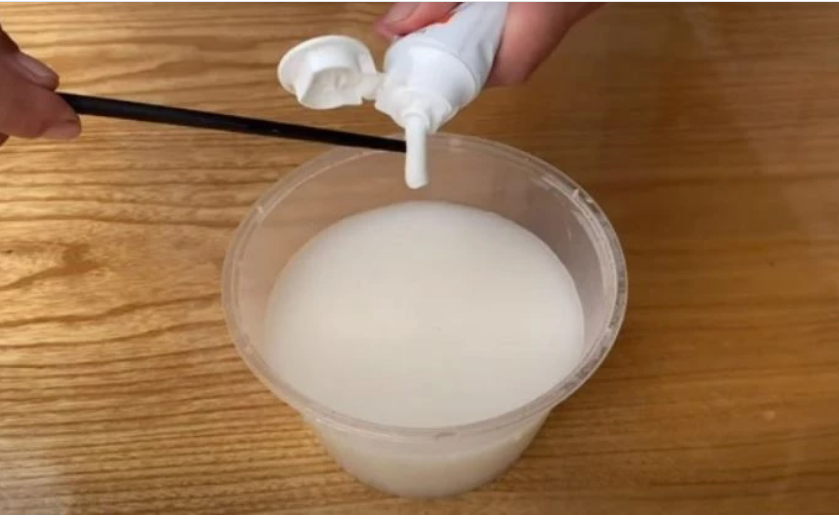 Chỉ cần hòa một lượng nhỏ kem đánh răng (khoảng bằng một đốt ngón tay) vào một bát nước vo gạo, khuấy đều và cho vào bình xịt, bạn đã có ngay một dung dịch tẩy rửa vừa tiết kiệm, vừa hiệu quả.