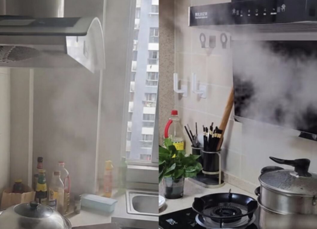 Giải pháp: Bật máy hút mùi trước khi bắt đầu nấu, đợi khoảng nửa phút trước khi đổ dầu vào và chiên; tắt máy hút mùi 3 phút sau khi nấu xong. Ngoài ra, tốt nhất nên chọn máy hút mùi có lưu lượng không khí 20m³/phút.