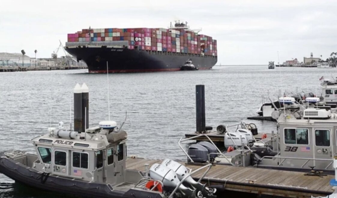 Một tàu chở hàng cập cảng Los Angeles. Ảnh: Reuters