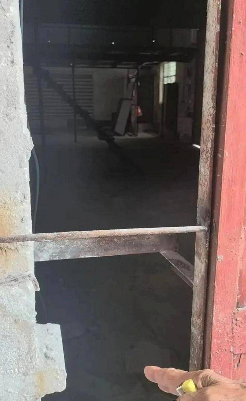 Nghi ngờ vợ mới của bố có mưu đồ, con gái cụ Biao dùng búa phá khóa cửa nhà cha mình. Ảnh: 163.