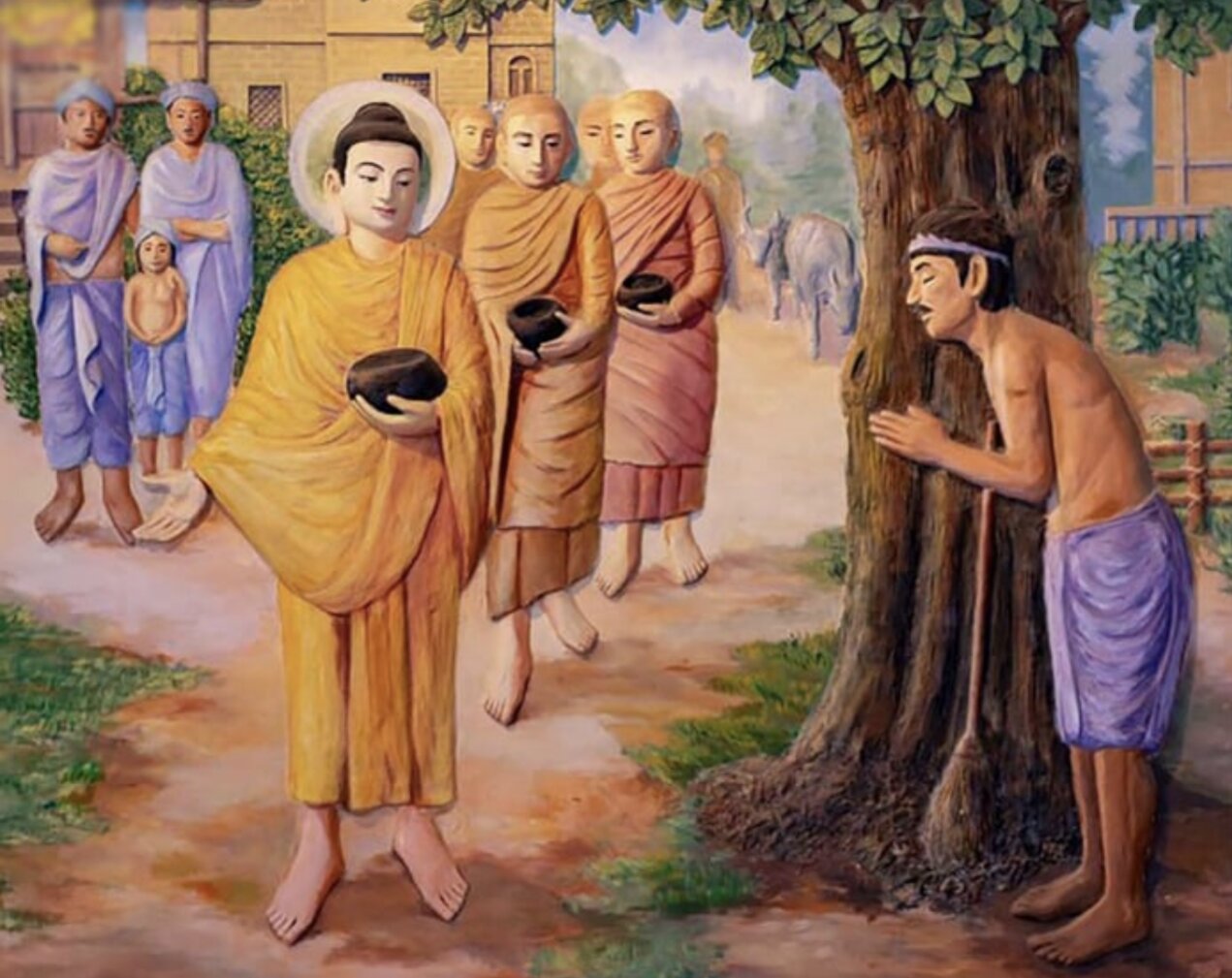Sau khi giác ngộ thành Phật, Đức Thế Tôn không sống như một giáo chủ quyền uy mà vẫn tiếp tục giữ nếp khất thực giản dị.