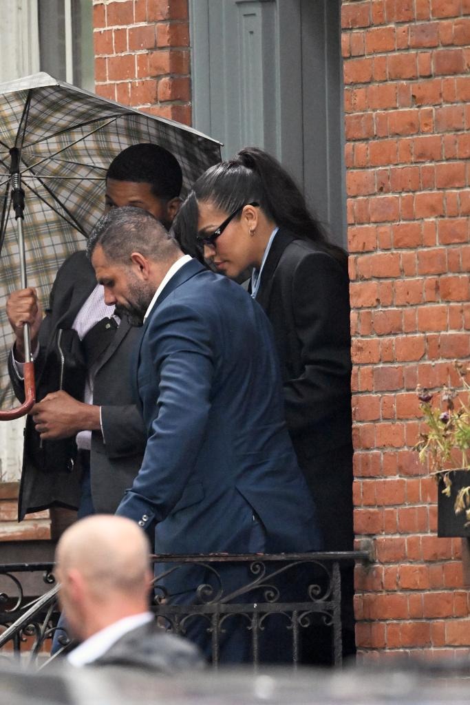 Cassie bên ngoài ṭa án, cô đang mang thai 8 tháng