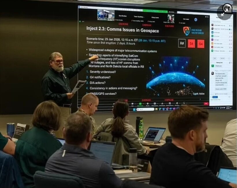 Trước đó, tháng 5/2024, một cuộc diễn tập được tiến hành bởi nhóm chuyên trách SWORM (Hoạt động, nghiên cứu và giảm nhẹ thời tiết không gian), bao gồm các cơ quan như NOAA và Bộ An ninh Nội địa Mỹ (DHS).