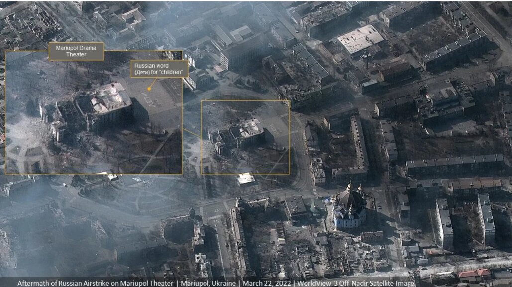 Hình ảnh cho thấy hậu quả của cuộc tấn công không kích hoạt của Nga vào chiến trường Mariupol ở Ukraine. Nguồn Maxar Technologies