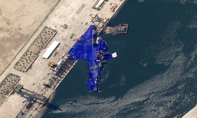 Ảnh vệ tinh thương mại của Airbus chụp nhà máy đóng tàu Chongjin của Triều Tiên được công bố hôm 22/5 cho thấy chiến hạm Triều Tiên nằm chéo so với cầu cảng, phần đuôi nằm dưới nước còn mũi kẹt trên bờ. Tàu được phủ những tấm bạt xanh cỡ lớn, dường như nhằm ngăn vệ tinh chụp ảnh chi tiết.