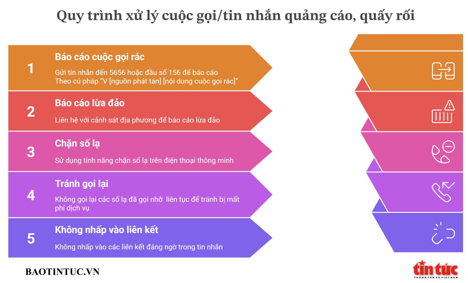 Các biện pháp ứng phó khi bị quấy rối bởi cuộc gọi, tin nhắn từ số lạ theo khuyến nghị của Sở Khoa học và Công nghệ TP Hồ Chí Minh.