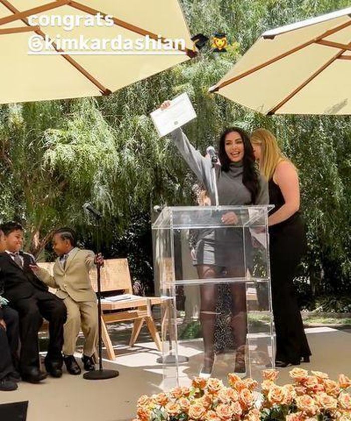 Jessica Jackson, một trong những luật sư hướng dẫn Kim, chia sẻ tại buổi lễ: "Sáu năm trước, Kim Kardashian bắt đầu chương trình với khát khao đấu tranh vì công lý. Cô ấy chưa từng nghe bài giảng nào tại trường luật, không đi bất kỳ đường tắt, chỉ có sự quyết tâm và một núi sách về các vụ án để đọc".