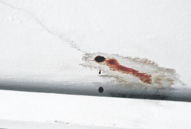 Một người dân sống ở tầng dưới phát hiện vết máu nhỏ giọt từ trần nhà xuống sàn pḥng ngủ. (Ảnh: Shin Min Daily News)