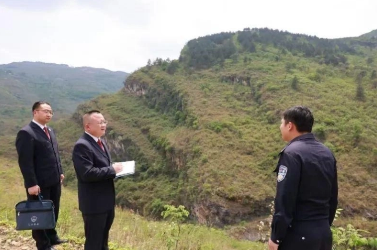 Kiểm sát viên của VKSND huyện T́nh Long đến hiện trường vụ án, tháng 2/2024. Ảnh: Hongxing Xinwen