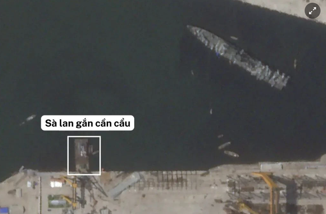 Ảnh vệ tinh về con tàu nổi cho thấy có một sà lan gắn cần cẩu gần vị trí mũi tàu trước đó. Ảnh: Planet Labs.