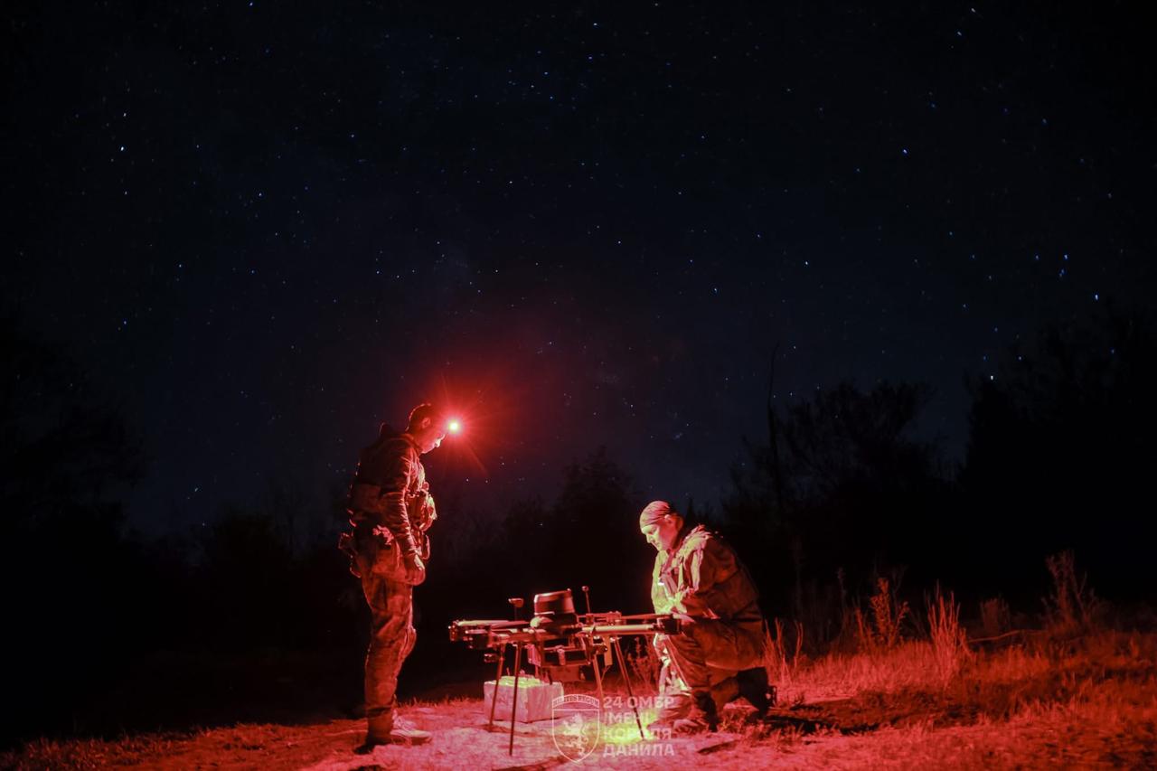 Binh sĩ của Lữ đoàn cơ giới số 24 thuộc quân đội Ukraine chuẩn bị vận hành thiết bị bay không người lái (UAV). Ảnh: Bộ Quốc phòng Ukraine/X
