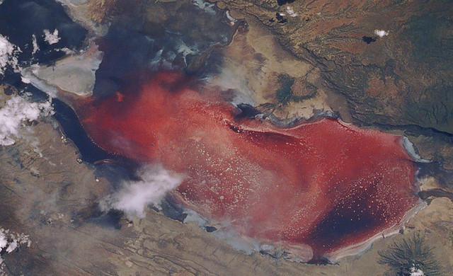 Các sinh vật kỳ lạ này bao gồm cổ khuẩn ưa mặn Haloarchaea cyanobacteria (tảo lam - lục), tô màu hồ thành nhiều sắc đỏ khác nhau. Tảo lam - lục lại chính là thức ăn của hồng hạc.