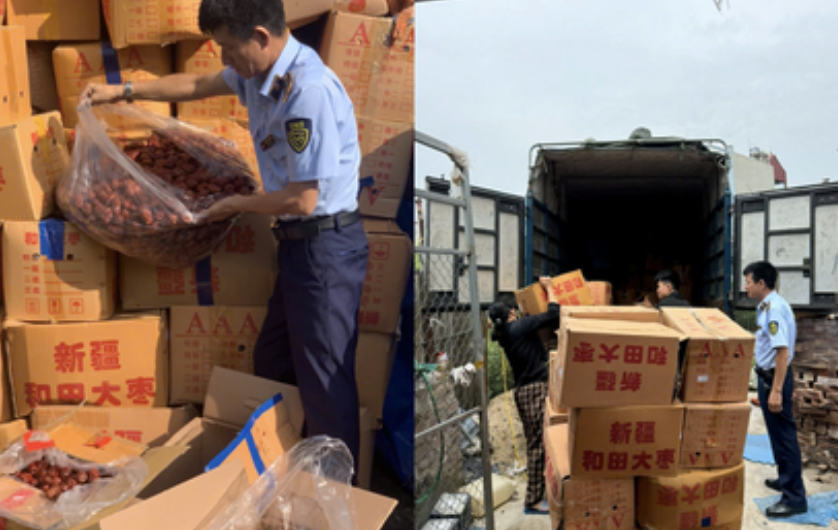 Tại thời điểm kiểm tra, lực lượng chức năng phát hiện cơ sở đang bày bán và lưu trữ số lượng lớn hàng hóa là thực phẩm khô có nguồn gốc nước ngoài, cụ thể là 4.300 kg táo đỏ khô do nước ngoài sản xuất.