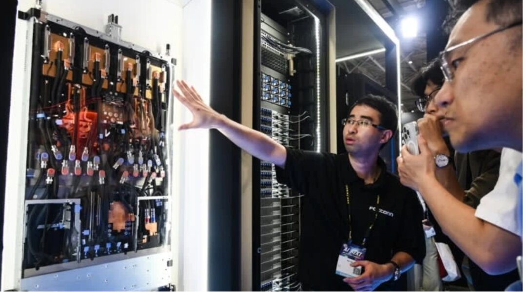 Máy chủ AI của Foxconn trưng bày tại triển lãm Computex 2025 ngày 20/5. Ảnh: Nikkei.