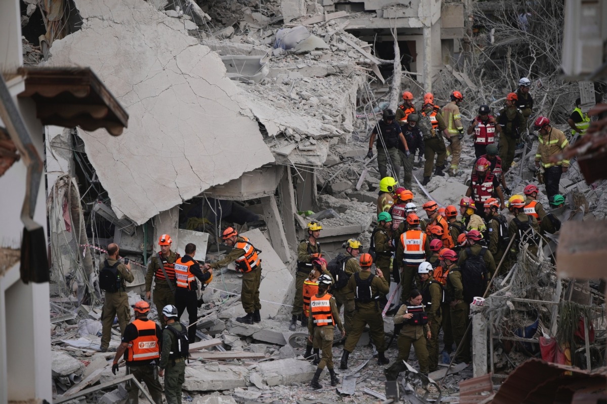 Những ṭa nhà trong khu vực dân cư ở thành phố Ramat Gan, gần Tel Aviv, bị phá hủy do trúng tên lửa.