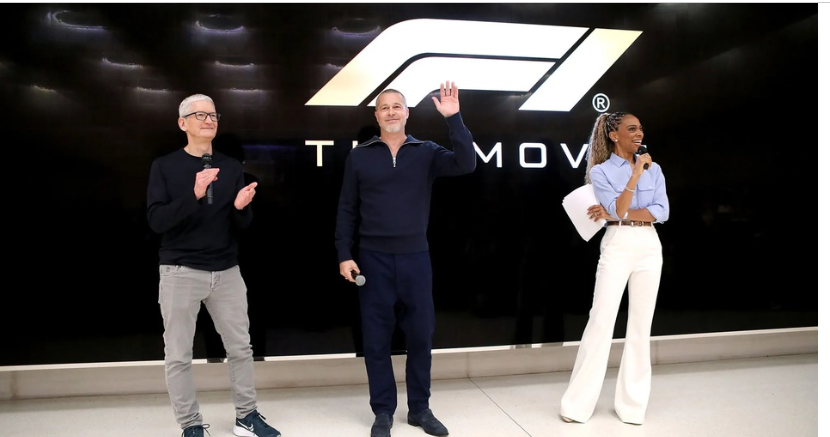 Brad Pitt cùng Tim Cook giới thiệu bộ phim F1 The Movie. Ảnh: Mac Daily News.