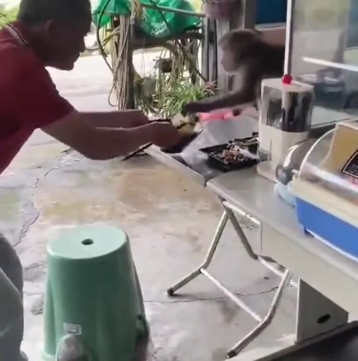 Một sự cố hy hữu nhưng không kém phần hài hước vừa xảy ra tại quán ăn nhẹ trong khu vực bộ tộc Zhulin, quận Heping, thành phố Đài Trung (Đài Loan). Một con khỉ hoang bất ngờ xông vào quán, khiến thực khách hốt hoảng khi nó liều lĩnh giật đồ ăn và "đấu tay đôi" với người để giành một bát mì nóng hổi.