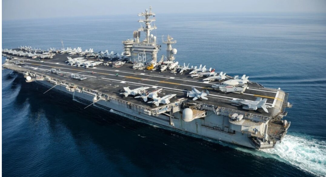Tàu sân bay USS Carl Vinson vào năm 2024. Tàu sân bay hiện đang di chuyển trên Biển Arab. Các đồng minh hoặc lực lượng ủy nhiệm của Iran dự kiến sẽ tiếp tục tấn công các tàu của Mỹ trong khu vực nếu nước này tham gia chiến dịch của Israel. Ảnh: MSN.