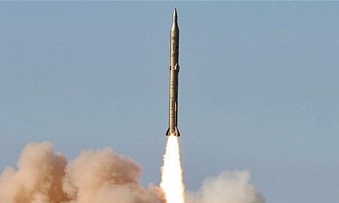 Vụ phóng tên lửa Sejjil trong bức ảnh đăng ngày 19/6. Ảnh: Tasnim
