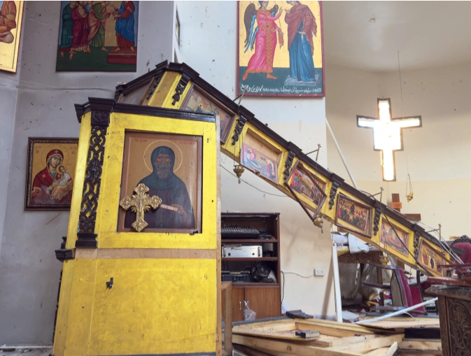 Cảnh đổ nát bên trong nhà thờ Mar Elias tại Damascus sau vụ tấn công khủng bố ngày 22/6. Ảnh: AFP