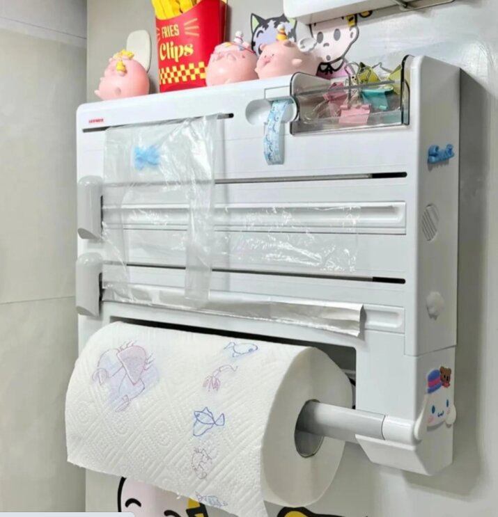 Sản phẩm này thường được quảng cáo là có thể đựng gọn mọi thứ từ giấy bạc, màng bọc thực phẩm, túi đựng đến băng dính, lại còn có dao cắt sẵn. Nhưng thực tế, phần dao cắt thường làm rách giấy không đều, khiến việc lấy màng bọc hay giấy bạc trở nên cực kỳ khó chịu.