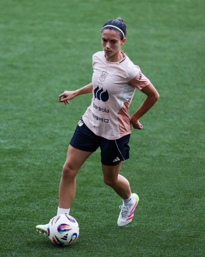 Aitana Bonmati trong một buổi tập cùng tuyển nữ Tây Ban Nha chuẩn bị cho Euro 2025. Ảnh: RFEF