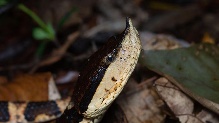Đó là rắn lục mũi hếch còn có cặp răng nanh sắc nhọn dùng để tiêm nọc độc, gây ra vết cắn đau đớn cho nạn nhân.
