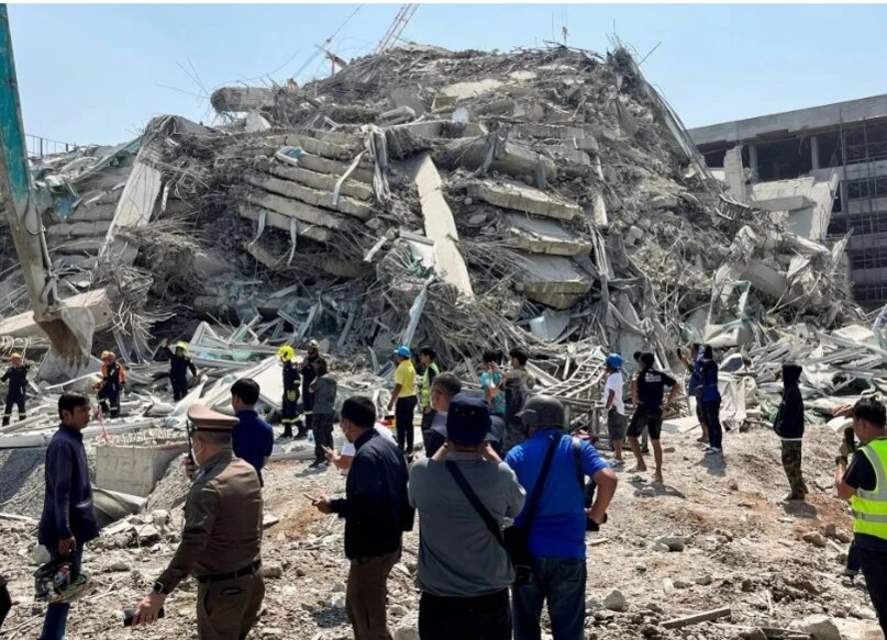 Tòa nhà 30 tầng tại Thái Lan bị sập trong trận động đất ở Myanmar. Ảnh: Reuters.