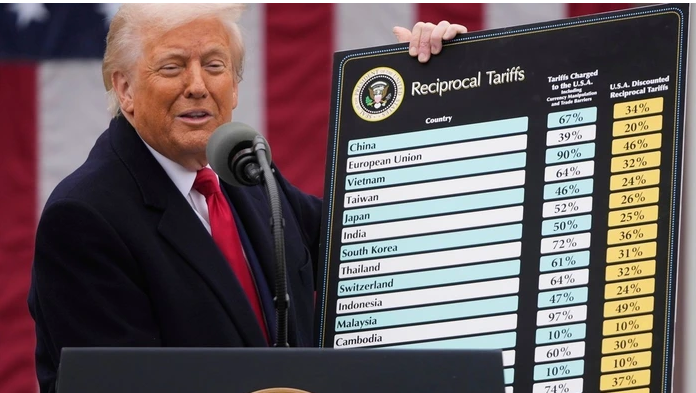 Tổng thống Donald Trump phát biểu trong sự kiện công bố mức thuế quan "có đi có lại" tại Vườn Hồng ở Nhà Trắng vào ngày 2-4. Ảnh: AP