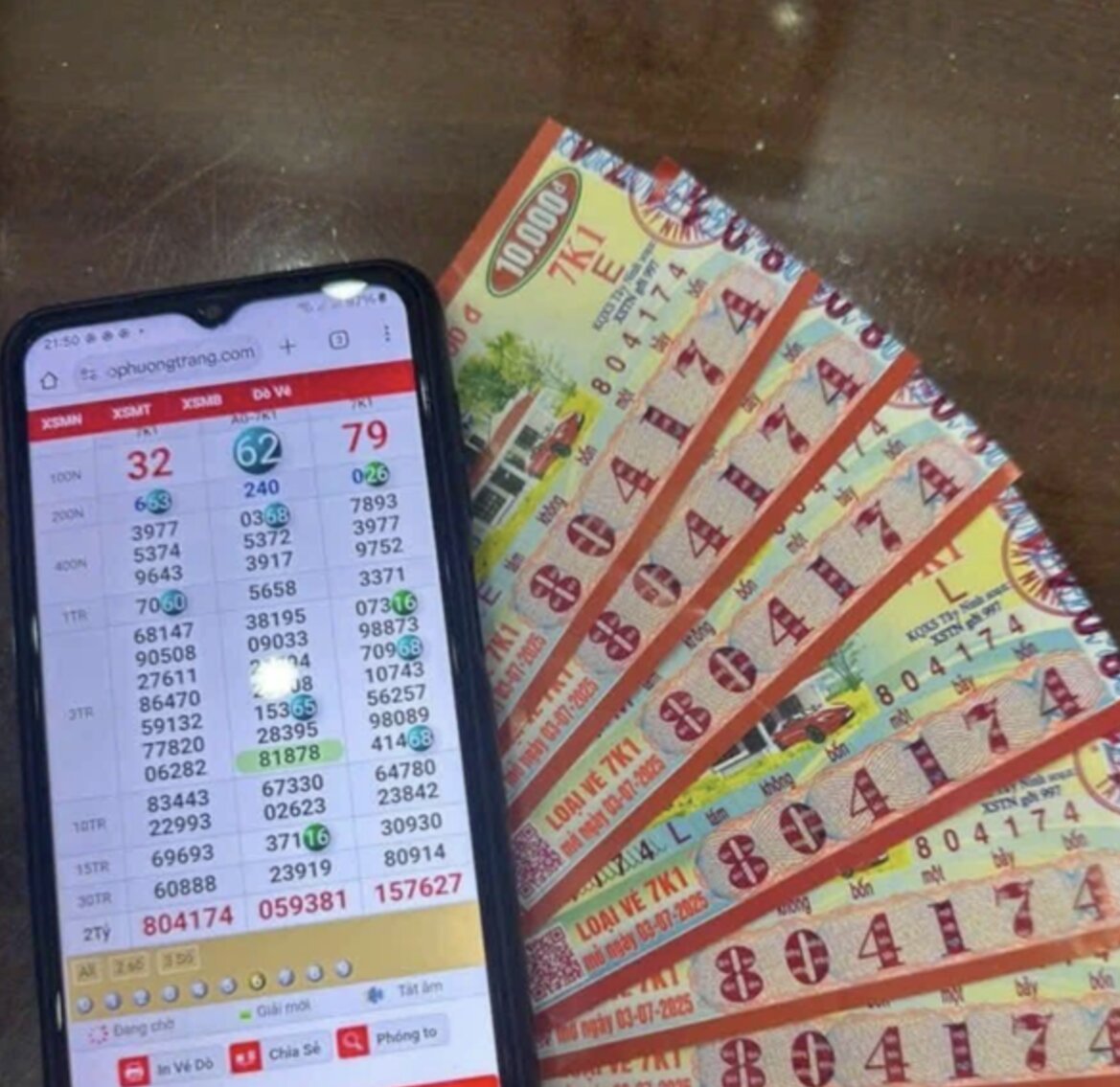 Ngoài trường hợp trên, một người đàn ông khác ở Phan Thiết (Lâm Đồng) cũng vừa trúng 3 tờ vé số giải độc đắc, mỗi giải 2 tỷ đồng. 3 tờ vé số mang dãy số 356800 của đài Sóc Trăng, mở thưởng hôm 2/7.