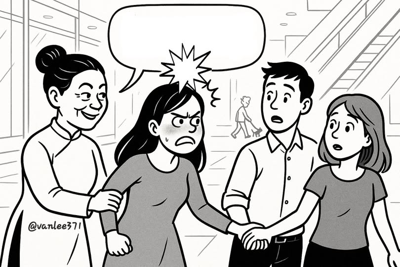 Tôi đang đi dạo ở một trung tâm thương mại nọ thì thấy chị hàng xóm cùng con dâu đang đi shopping.
