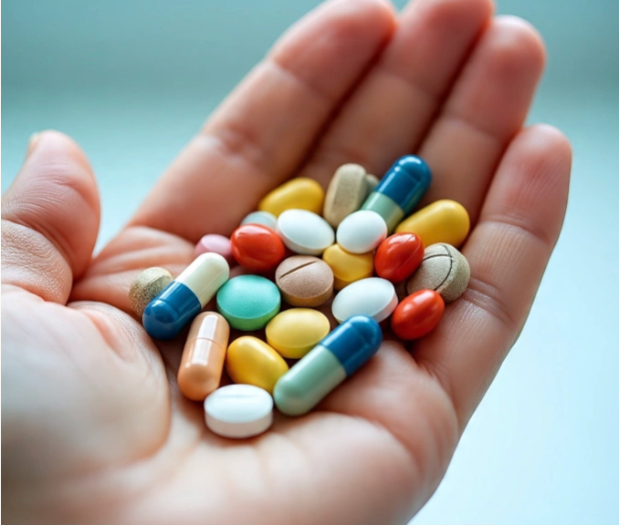 Uống thuốc, thực phẩm chức năng ngay khi thức dậy vào buổi sáng, khi bụng đói có thể làm quá tải quá trình giải độc của gan. Ảnh: AI