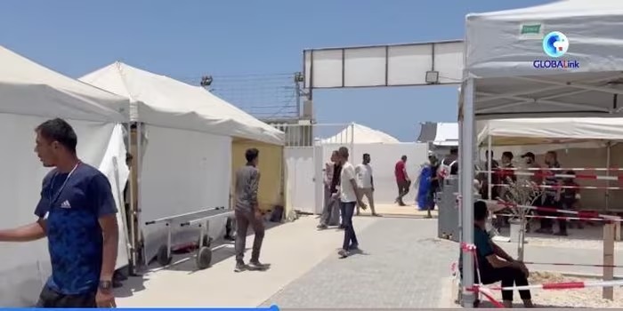 Bệnh viện dă chiến Chữ thập đỏ ở Rafah là cơ sở y tế duy nhất hoạt động đầy đủ trong khu vực. Ảnh từ vieo của Xinhua