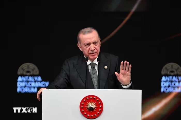 Tổng thống Thổ Nhĩ Kỳ Recep Tayyip Erdogan phát biểu tại một sự kiện ở Antalya. (Ảnh: THX/TTXVN)