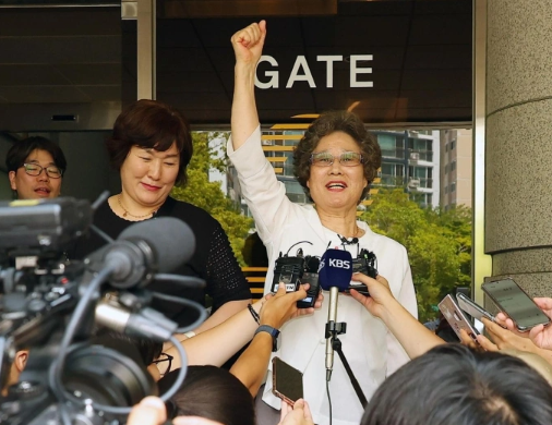 Sau phiên điều trần, bà Choi bước ra khỏi tòa án quận Busan với nắm đấm giơ cao và hét lớn ba lần: "Chúng ta đã thắng!".