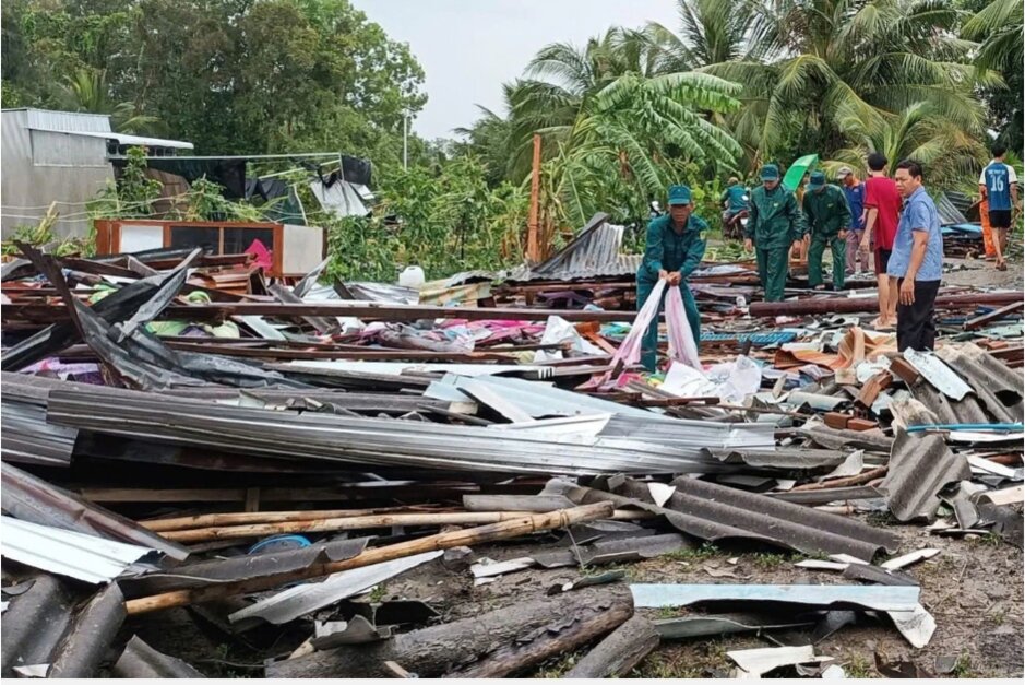 Cơn lốc xoáy quét qua xã Ninh Thạnh Lợi, tỉnh Cà Mau đã khiến 22 căn nhà bị sập, gây thiệt hại nghiêm trọng.