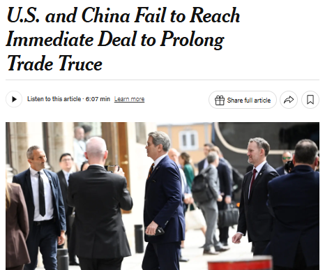 Các quan chức cấp cao của Hoa Kỳ và Trung Quốc đã nhất trí tiếp tục thảo luận về việc gia hạn thỏa thuận đình chiến thương mại mong manh dự kiến sẽ hết hạn vào giữa tháng 8, nhưng chưa đạt được thỏa thuận ngay lập tức để ngăn chặn một cuộc chiến thương mại tiềm ẩn nguy cơ gây bất ổn giữa hai nền kinh tế lớn nhất thế giới.