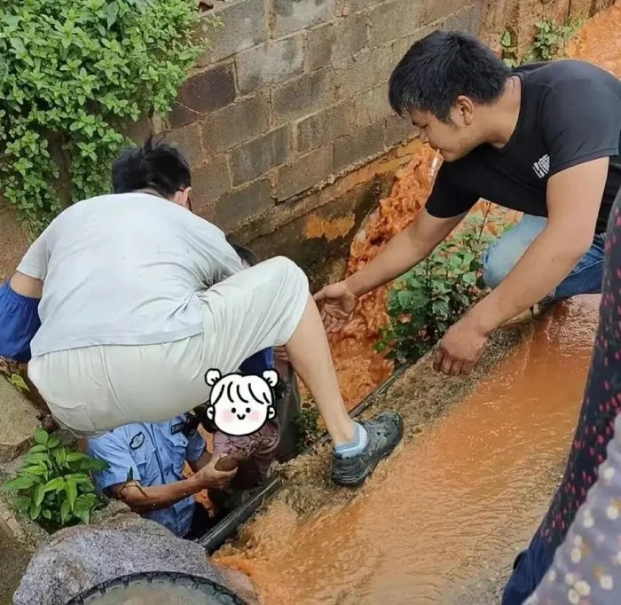 Trong lúc cả đội đang phân tán tìm kiếm, một tiếng kêu cứu yếu ớt vang lên từ bên trong hệ thống cống ngầm. Không chần chừ, cảnh sát Lý Kim Xuân lập tức lao mình xuống dòng nước lạnh buốt và tối đen để xác định vị trí bé gái. Sau vài phút nỗ lực, anh phát hiện cô bé đang cố bám vào một cành cây giữa dòng chảy xiết, cơ thể đã kiệt sức và run lẩy bẩy.