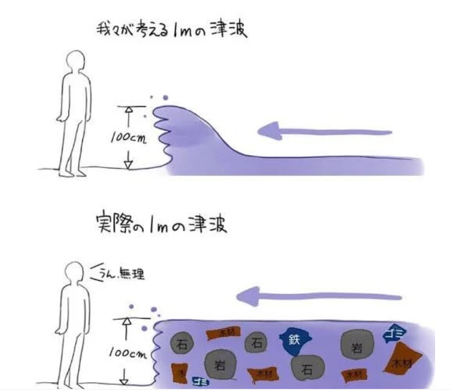 Trên X, tác giả người Nhật Bản Nobushiro Masaki đã lên tiếng cảnh báo về mối hiểm họa từ những con sóng thần "nhỏ". Ông nhấn mạnh rằng người dân không nên chủ quan trước những đợt sóng cao khoảng 1 mét, bởi chúng vẫn đủ sức gây ra thiệt hại nghiêm trọng.