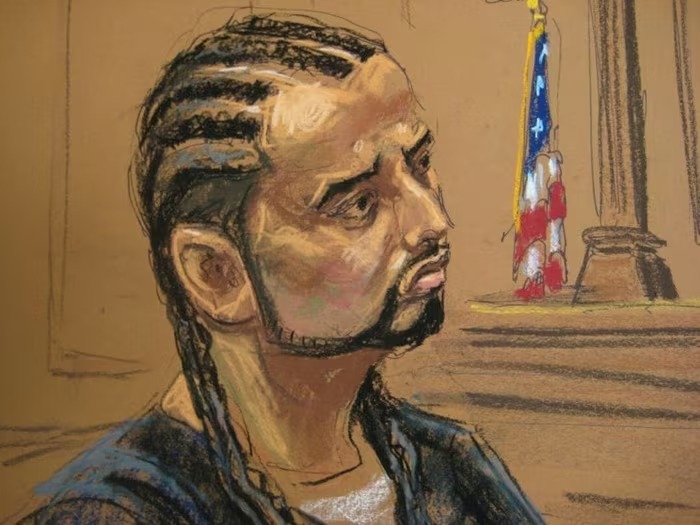 Haroon Aswat được mô tả trong bản phác thảo phòng xử án này trong phiên tuyên án tại tòa án Liên bang Mỹ ở New York vào năm 2015. Ảnh: Reuters.