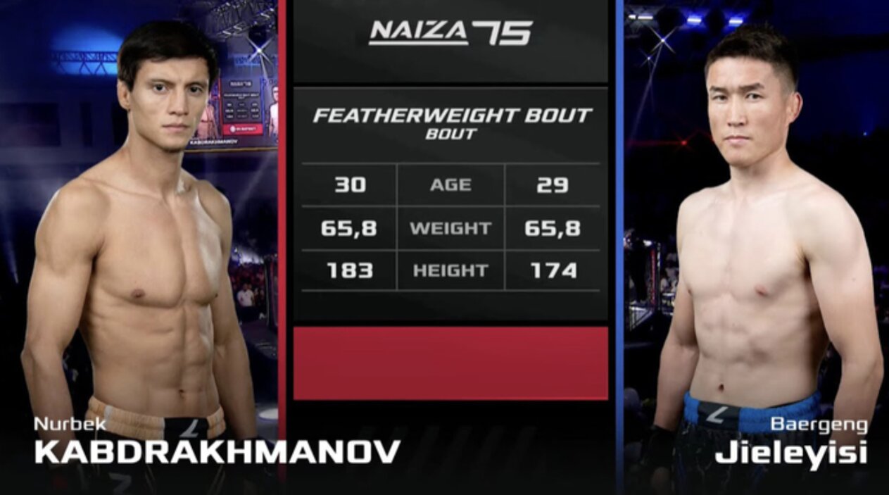 Vào rạng sáng 28/7 theo giờ Bắc Kinh, võ sĩ Trung Quốc Baergeng Jieleyisi (Ba Nhĩ Cảnh Kiệt Lặc Y Tư) đến Kazakhstan để tranh đai vàng MMA ở sự kiện NAIZA FC 75. Tuy nhiên tay đấm 29 tuổi này thất bại theo tính điểm trước nhà vô địch Kazakhstan Nurbek Kabdrakhmanov.