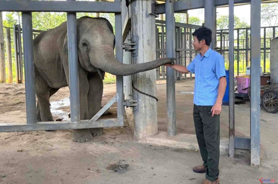 Ông Nguyễn Công Chung gắn bó gần 10 năm nay với voi Gold. Ảnh: Hải Dương