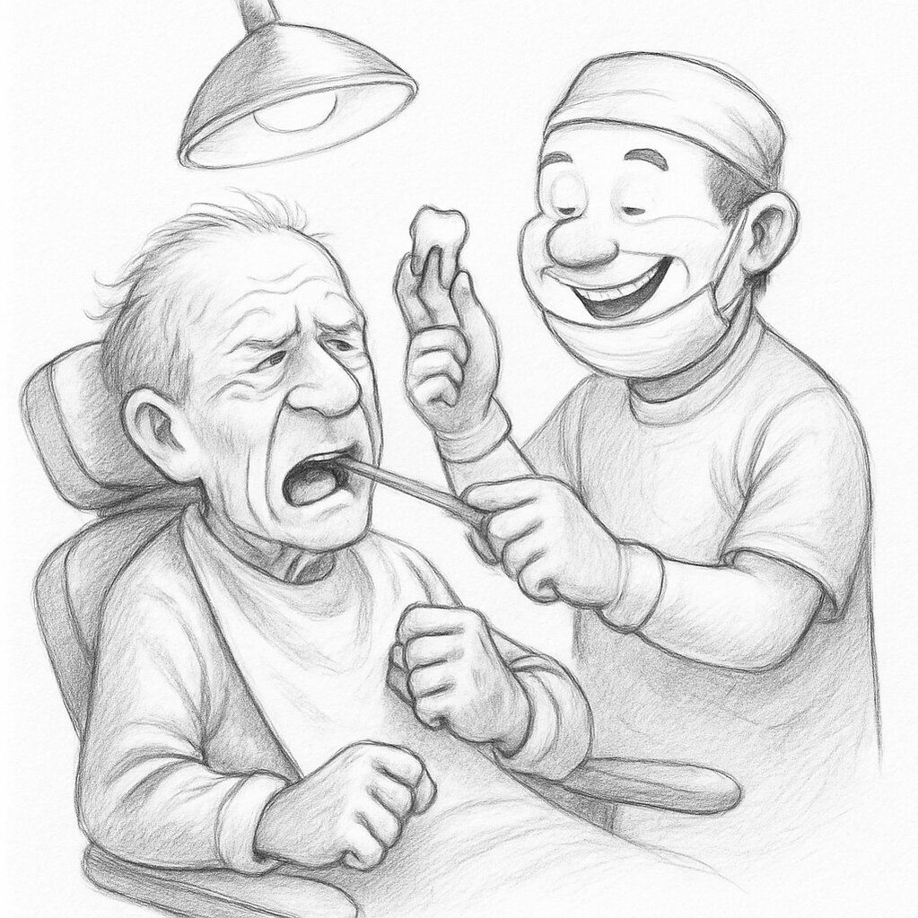Ông Tám bị sâu răng, đến nha sĩ nhờ nhổ.