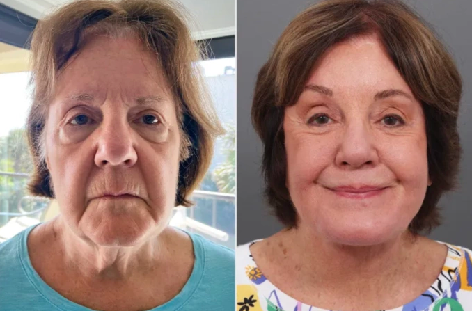 Deborah, 78 tuổi, ở Mỹ trước (trái) và sau (phải) khi phẫu thuật căng da mặt. Ảnh: People
