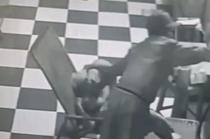 Cụ thể, hình ảnh camera cho thấy, vào 19h30 ngày 14/8, cụ bà đang ngồi xem tivi trên ghế xếp. Lúc này, một người đàn ông đội mũ, mặc áo khoác, quần lửng tiến tới từ phía sau, bóp cổ cụ bà.
