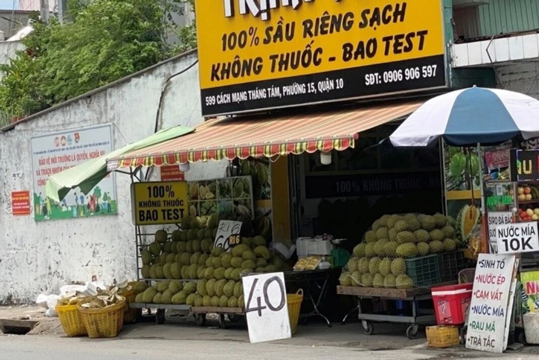 Nhiều vựa trái cây ở trung tâm TP.HCM bán sầu riêng với giá chỉ từ 40.000 - 60.000 đồng/kg. Ảnh: Đại Việt.